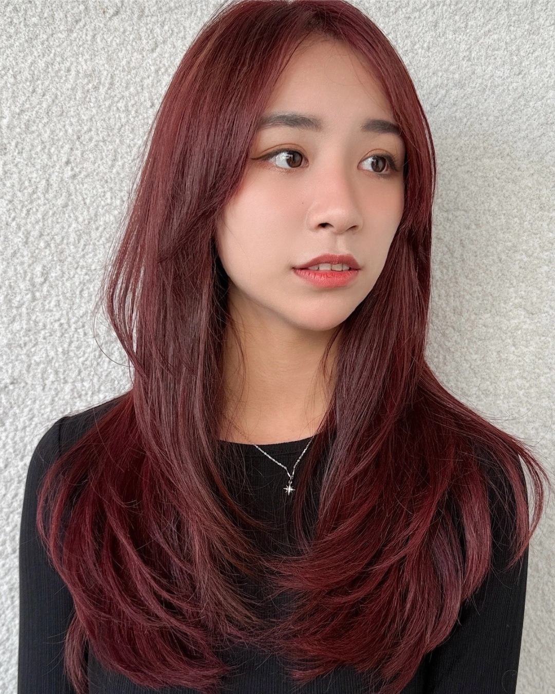 💜 3️⃣ 深紅茶棕 — 室內是深茶調、戶外帶微紅光;顯白提亮、搭配毛衣針織超溫柔。退色會轉自然暖棕,學生人氣王。