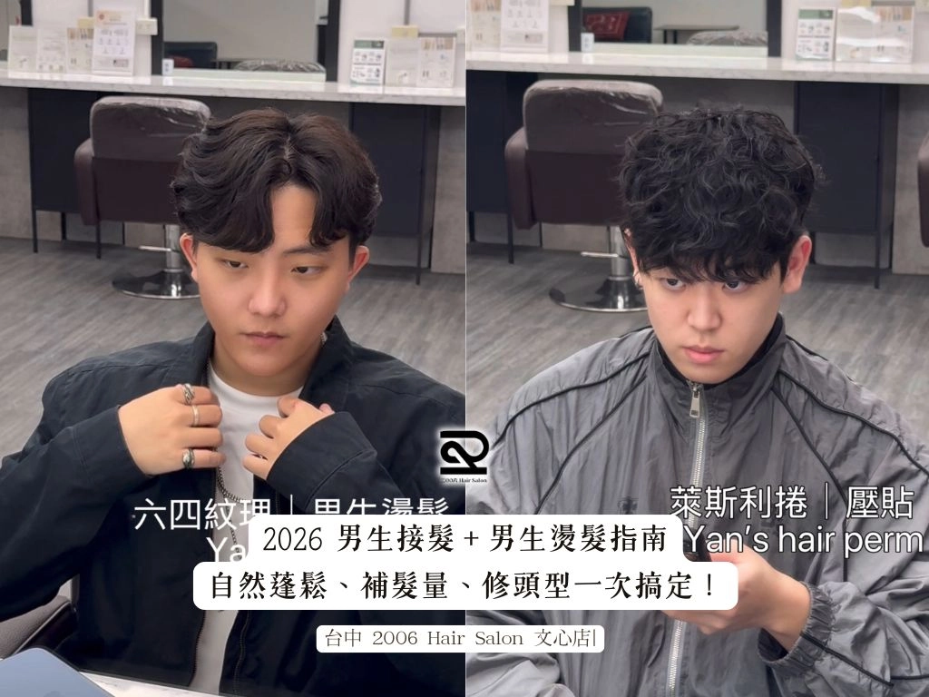 2026 男生接髮+男生燙髮指南|台中 2006 Hair Salon 文心店|自然蓬鬆、補髮量、修頭型一次搞定!